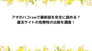 少年ジャンプ アオのハコrawで最新話を安全に読める?違法サイトの危険性の比較を調査! アオのハコをrawで無料で読みたいけど、安全なサイトが分からない…そんな不安を感じていませんか?実は今、ネット上では毎月1,000件以上も「アオのハコ raw」に関する検索が行われています。多くの人が、rawサイトの仕組み・危険性・公式との... 2025.10.01 少年ジャンプ